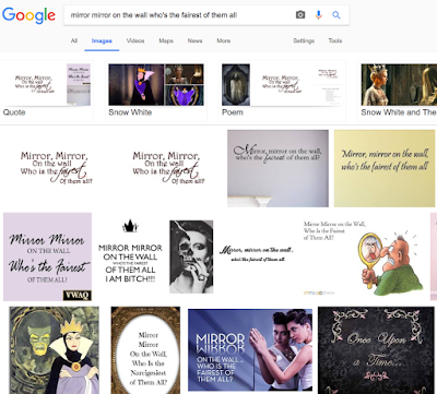 到現在,當大家在google搜尋,亦會看見大量相關圖片,全部都寫上Mirror Mirror on the wall。究竟,是1937年開始,80年間的所有人都記錯,還是,在我們毫不知情下,歷史已經再一次被人改寫呢?